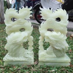 Cặp Tượng Rồng Cuộn Đá Ngọc Hoàng Long Phong Thủy