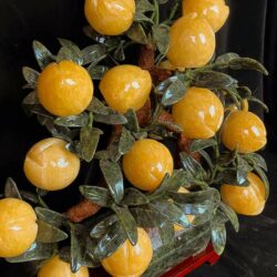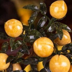 Cây Đào chế tác hoàn toàn từ đá vàng hay còn gọi là đá ngọc hoàng long. Một loại đá được thời vua chúa Trung Quốc sử dụng nhiều. Bởi nó mang một màu vàng thuần khiết giống như chiếc long bào của các vị vua quyền uy. Vì thế, đá Ngọc Hoàng được người nghệ nhân chạm khắc tạo thành tác phẩm cao cấp, thẩm mỹ.