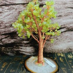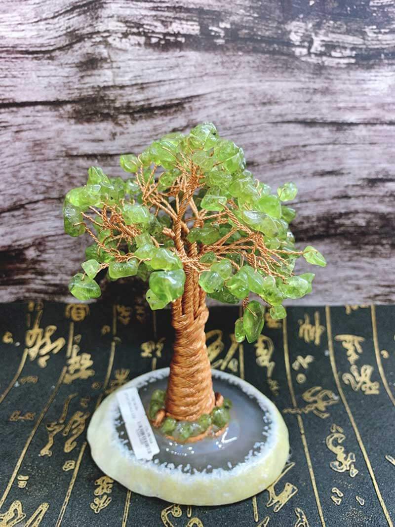 Cây thạch anh tài lộc hay cây đá peridot được chế tác từ đá tự nhiên hình thành bởi magma. Đá có màu xanh oliu nên còn có tên gọi khác là “ngọc lục bảo chiều tà”. Loại đá này khá quý hiếm, màu sắc bắt mắt. Vậy nên, nó được rất nhiều người săn lùng, nhất là gia chủ mệnh Hỏa và mệnh Mộc.