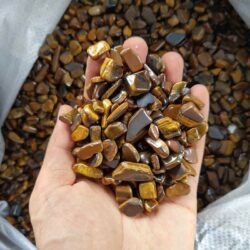 Đá thạch anh thô vụn mắt hổ nâu vàng là loại đá không còn quá xa lạ hiện nay. Đá gây chú ý với hiệu ứng mắt hổ thông qua các đường vân vô cùng đặc biệt. Chính vì diện mạo cuốn hút này mà đá mắt hổ được sử dụng nhiều trong phong thuỷ. Với đá thô vụn, người ta sử dụng đá để rải nền, rải mộ và trang trí không gian.