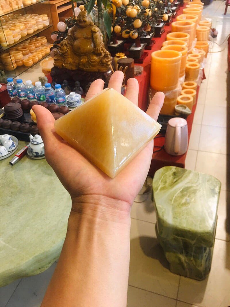 Kim tự tháp vàng có lẽ là một trong những món đồ phong thuỷ được nhiều người kiếm tìm. Không chỉ sở hữu vẻ ngoài bắt mắt, khối hình làm bằng đá thạch anh vàng này còn đem đến nguồn năng lượng tích cực cho chủ nhân.