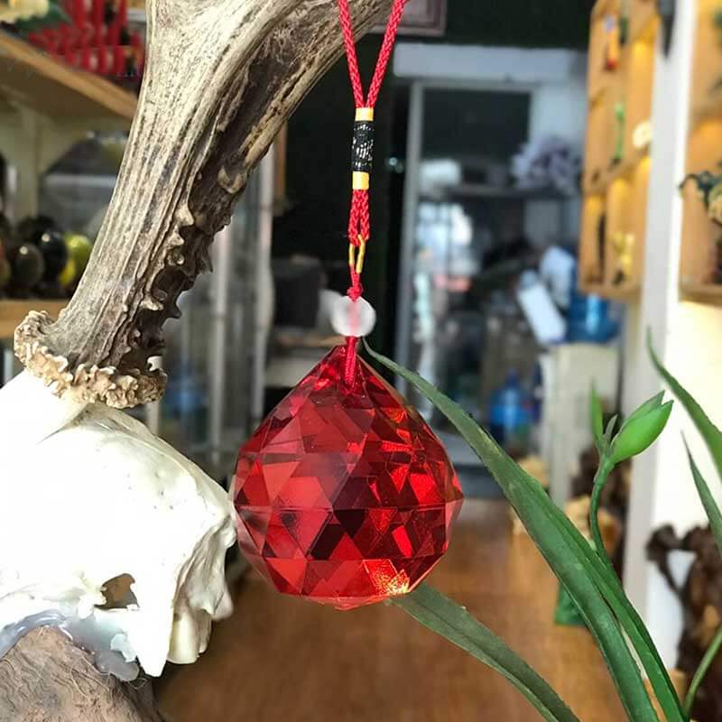 Quả Cầu Pha Lê Treo Phong Thủy Màu Đỏ