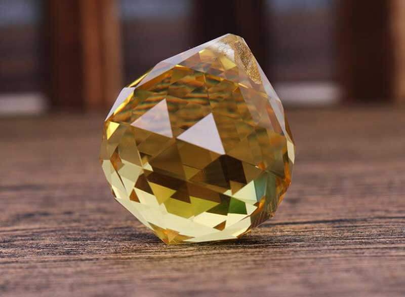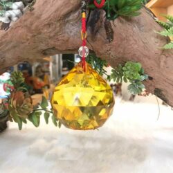 Quả cầu treo phong thủy màu vàng được ví giống như viên kim cương. Các góc vát cạnh đều cho thấy kỹ năng và sự chăm chút tỉ mỉ của người thợ. Khi quả cầu này tương tác với ánh sáng, mọi góc độ và mặt giác sẽ lấp lánh hấp dẫn người nhìn.