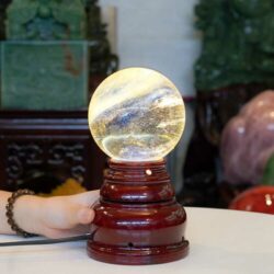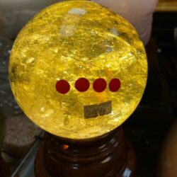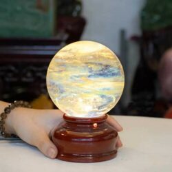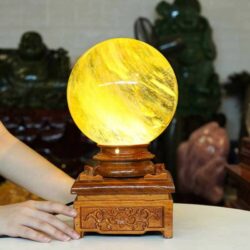 quả cầu phong thủy có màu vàng, kết hợp màu đèn LED buổi tối nhìn lung linh như mặt trăng. rất phù hợp đặt trang trí trong phòng làm việc.
