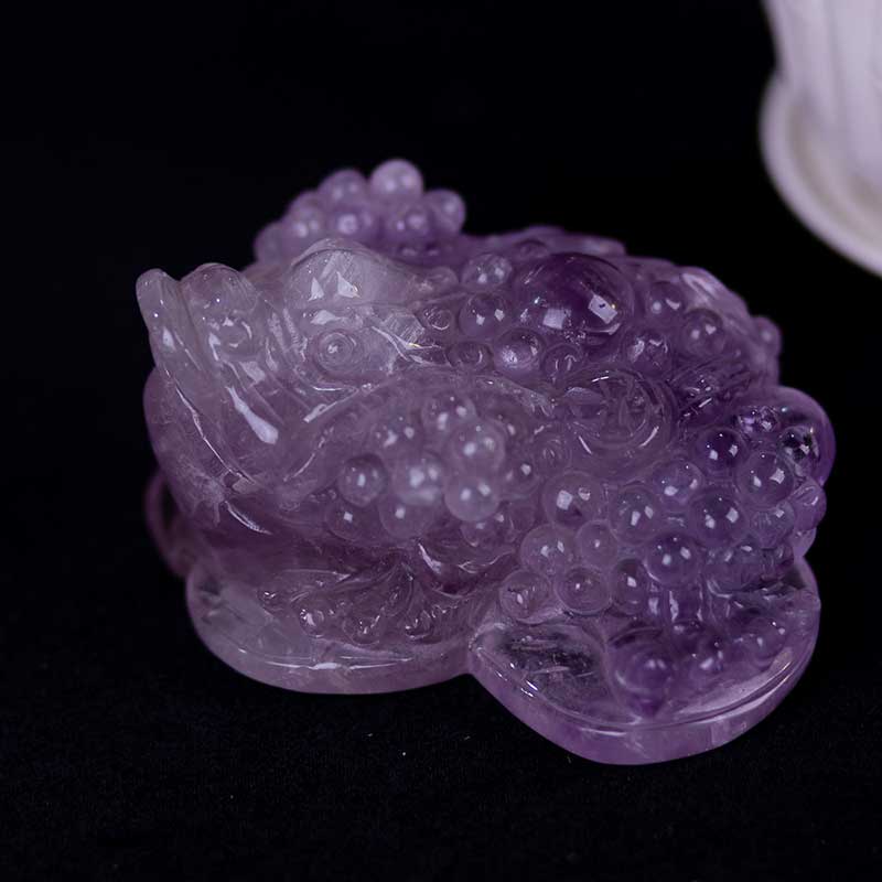 Bên cạnh đó, Thiềm Thừ thạch anh tím còn hỗ trợ an tĩnh tinh thần. Nguồn năng lượng tự nhiên của đá sẽ giúp giải độc, trừ tà, xua tan đi ám khí xấu trong nhà. Nếu phong thuỷ nhà bạn không tốt, tiền tài dễ đi ra ngoài thì linh vật này quả thực không thể bỏ qua.