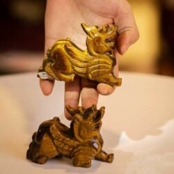 Các linh vật phong thuỷ có nhiều kích thước khác nhau. Tuy nhiên đối với linh vật để bàn, bạn chỉ nên chọn lựa linh vật có hình dáng nhỏ gọn, vừa phải. Với Tỳ Hưu đá mắt hổ, việc chọn lựa trang trí bàn làm việc là rất phù hợp. Màu nâu vàng của đá mắt hổ sẽ giúp cho bàn làm việc có sức sống và được thu hút hơn. Nhưng trên hết, ý nghĩa phong thuỷ của linh vật này mới thực sự đáng để quan tâm.